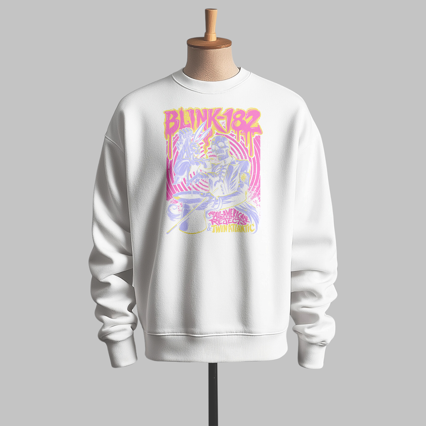 Show your love for one of the most influential pop-punk bands with the Blink-182 Sweatshirt. Featuring the iconic Blink-182 logo or classic album artwork, this sweatshirt is perfect for fans of the band's energetic sound and irreverent style. Whether you're heading to a concert or just relaxing, this sweatshirt brings a nostalgic vibe and comfort.