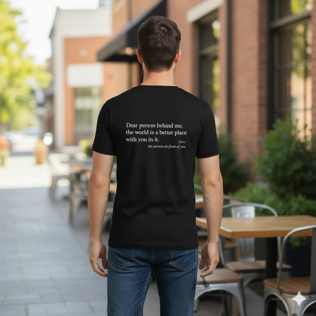 Spread kindness everywhere you go with this uplifting unisex T-shirt. Designed with a heartfelt message on the back — “Dear Person Behind Me, You Are Enough. The World Is Better With You In It.” — this shirt is a reminder to others that they matter, just as they are.