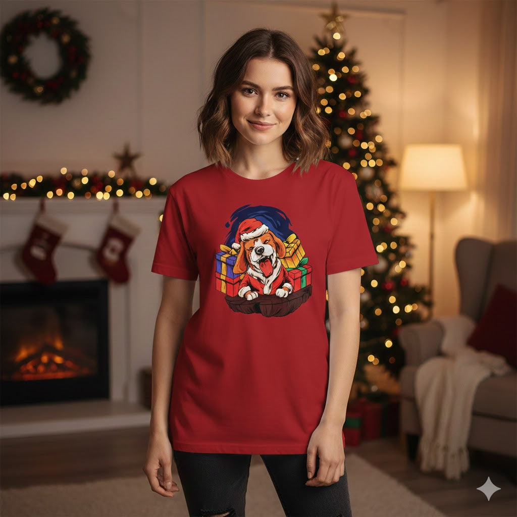 Get ready for the holidays with this adorable Christmas Beagle T-Shirt! Featuring a happy Beagle wearing a Santa hat and coat surrounded by colorful Christmas presents, this shirt is perfect for dog lovers and anyone who loves the festive season. Made from comfortable, high-quality fabric, it's a great choice for holiday parties, Christmas morning, or just spreading some cheer. It makes a wonderful gift for Beagle owners or friends who are crazy about dogs!
